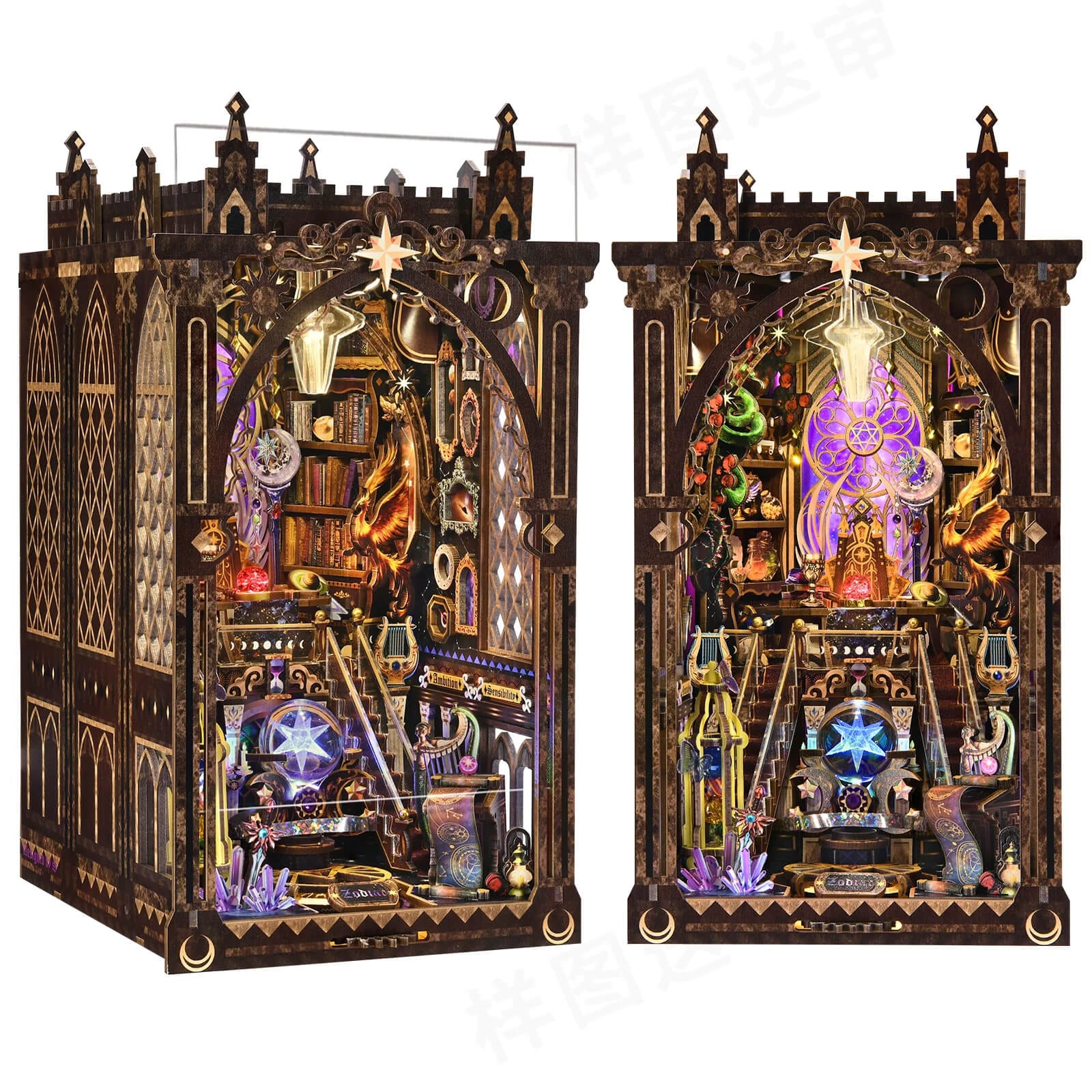 DIY Book Nook Kit Twelve Constellations 3D Wooden Puzzle Bookshelf Insert